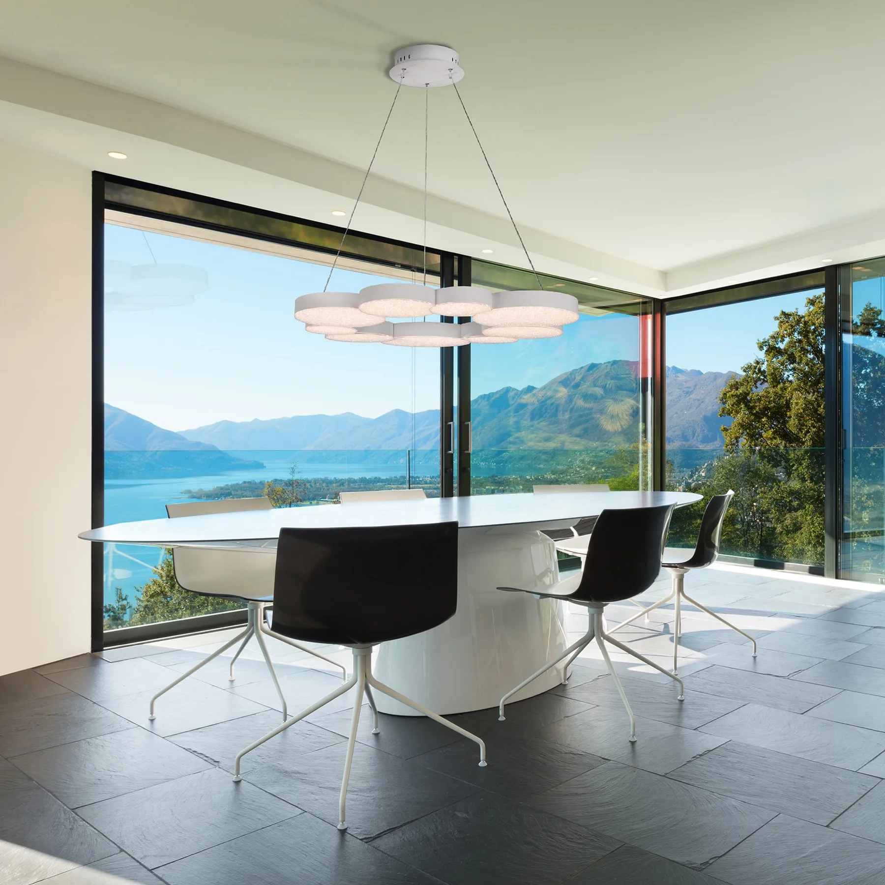 LUNAS - это современная концепция, которая создает узоры и неясные фигуры, которые отсылают нас к разным фазам луны. коллекция рисует образы волшебного ночного водоема с листьями кувшинок, балансирующими на воде. Подвесные и потолочные светильники LUNAS также напоминают ритмичные круги на воде из-за их равномерного рассеивания света. Предлагая широкий выбор регулируемых подвесных и потолочных светильников, LUNAS впишется в простой и просторный интерьер в современном стиле минимализма. Часть светильников коллекции имеет функцию контроля цветовой температуры с помощью пульта, который идет в комплекте со светом (артикула 5764, 5762, 5761, 5760).