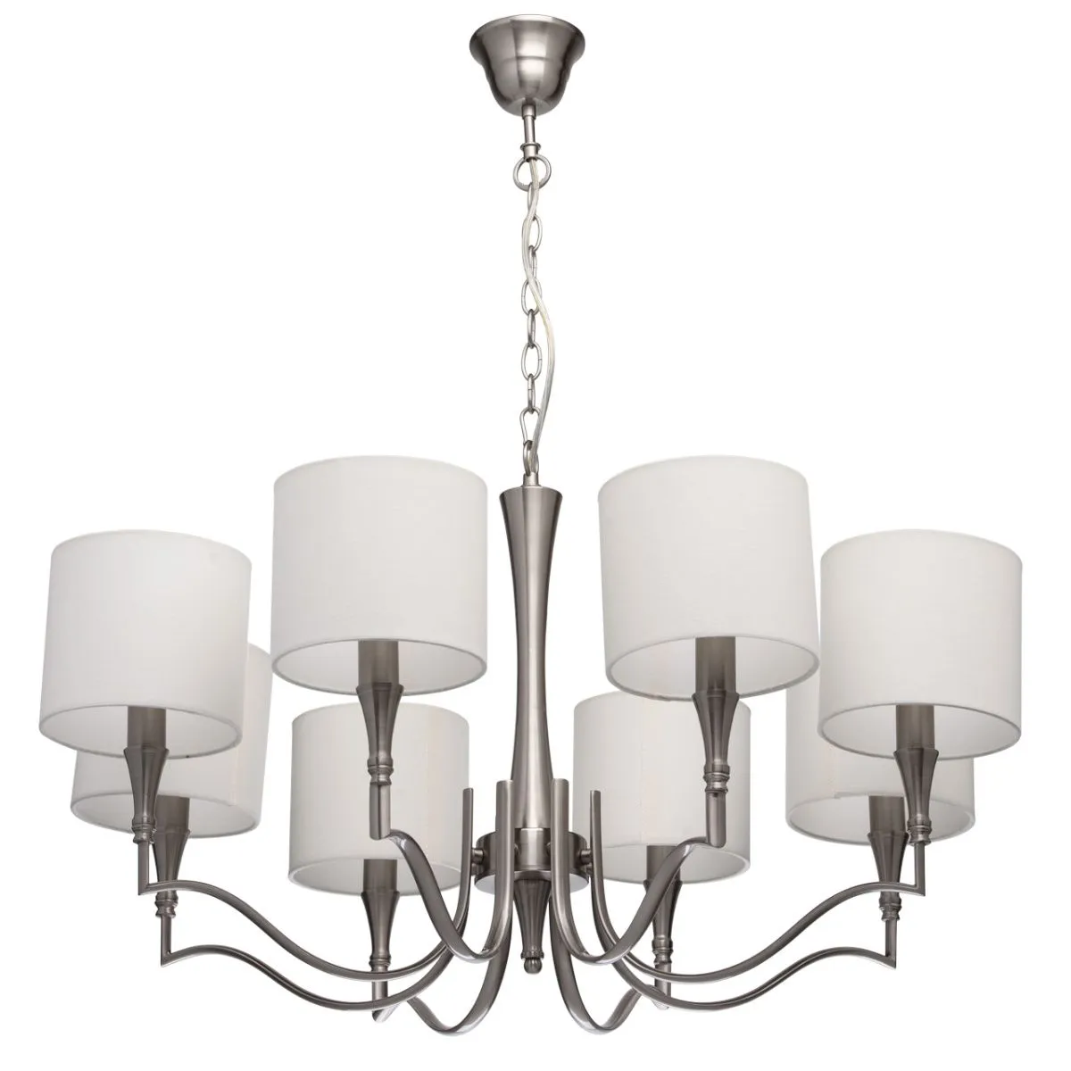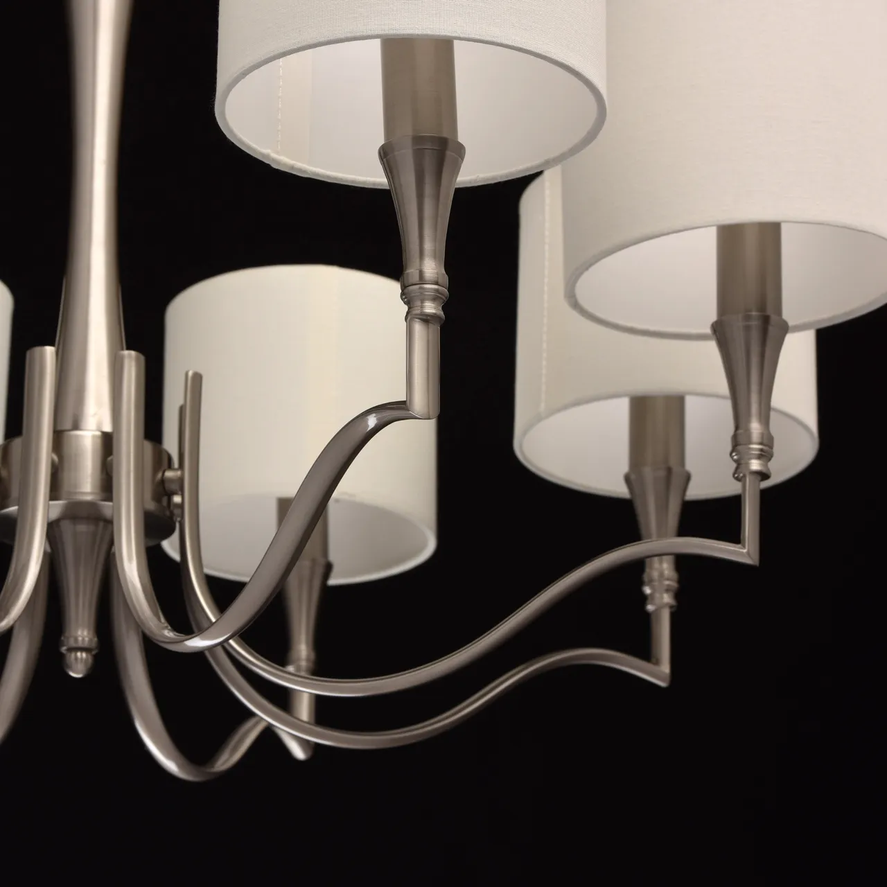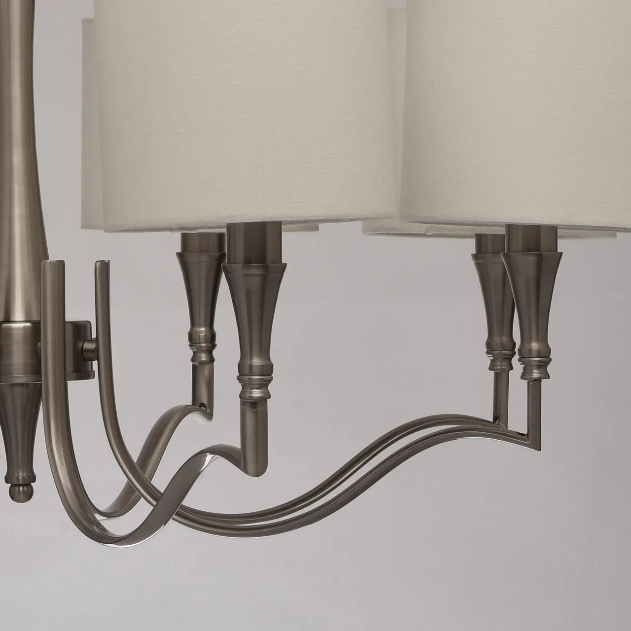 Металлическое основание цвета сатинового никеля. Абажуры -текстиль сливочного цвета