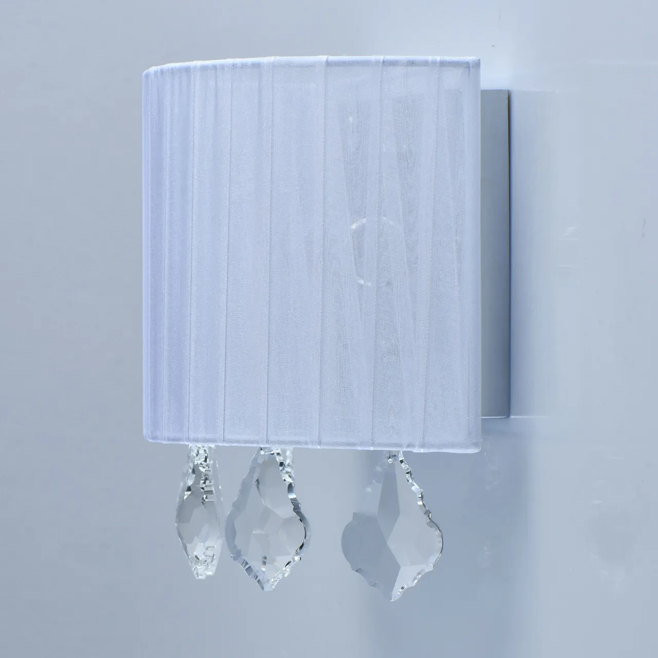 Основание/металл/хром Плафон/органза/белый Декор/хрусталь/прозрачный